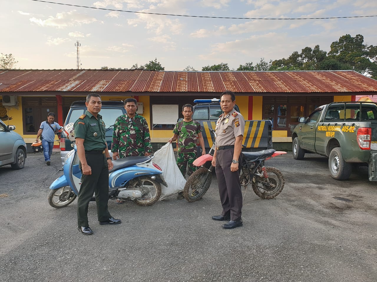 Petugas juga turut mengamankan 1 unit motor jenis Scoopy warna biru BG 6815 CP , 1 unit honda modifikasi Trill, 7 buah HP, 1 buah timbagan digital, 1 pucuk senpi rakitan jenis rev, 6 butir peluru, 2 bila senjata tajam, 4 kantong plastik bening,1 set alat hisap shabu, 1 lembar KTP berinisial (RPI) dan 2 Buah tas jinjing.