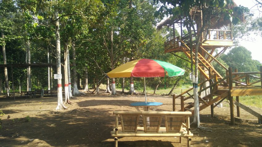 Sementara itu untuk pengunjung yang ingin menikmati sajian kuliner,pengelolah menyediakan berbagai tempat duduk yang terbuat dari bambu persis dibawa rindangnya pepohonan.