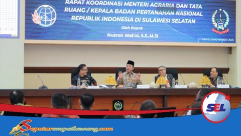 MAKASSAR – Menteri Agraria dan Tata Ruang/Kepala Badan Pertanahan Nasional (ATR/BPN), Nusron Wahid, memimpin Rapat Koordinasi (Rakor) bersama kepala daerah se-Provinsi Sulawesi Selatan (Sulsel), di Kantor Gubernur Sulsel pada Kamis (13/11/25).